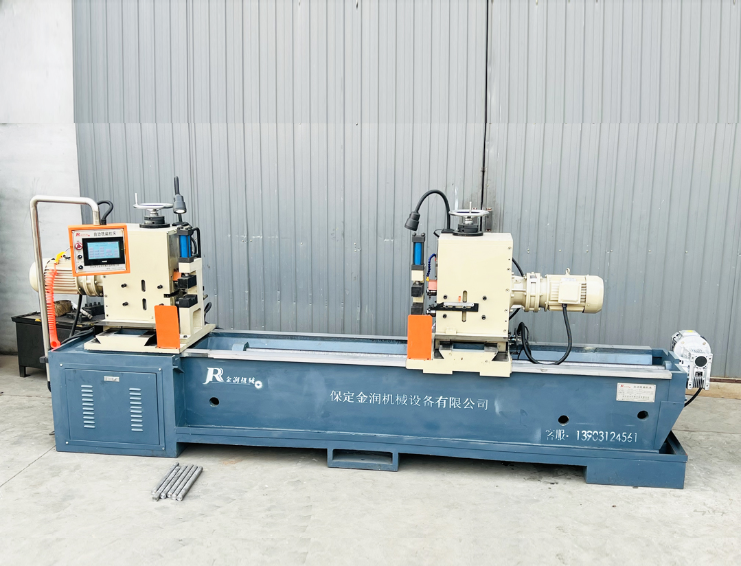 5、高配機(jī)型帶有本公司研發(fā)的儲(chǔ)料架和自動(dòng)進(jìn)料/卸料裝置(需單獨(dú)采購(gòu)),設(shè)備啟動(dòng)后可以一次性加工完儲(chǔ)料臺(tái)上放置的所有軸料,大大減少了用工量,并明顯提升生產(chǎn)效率,同時(shí)由于設(shè)備運(yùn)轉(zhuǎn)時(shí)操作工的雙手離開(kāi)了工作區(qū)域,非常有利于安全生產(chǎn),可實(shí)現(xiàn)無(wú)人值守。(低配機(jī)型為手工放料,手工取料,一次可加工2根軸料,生產(chǎn)效率高,但需人工值守)